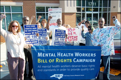 UE Local 150 sees the fight these three workers' jobs as part of the larger fight for a "Mental Health Workers Bill of Rights" and public employee bargaining. The union's victory over this firings also strikes a blow against DHHS's rigid and unfair "zero tolerance policy." But on the day of the ruling, DHHS Secretary Lanier Cansler was defensive. "We will continue to enforce the zero tolerance policy," he told a reporter.